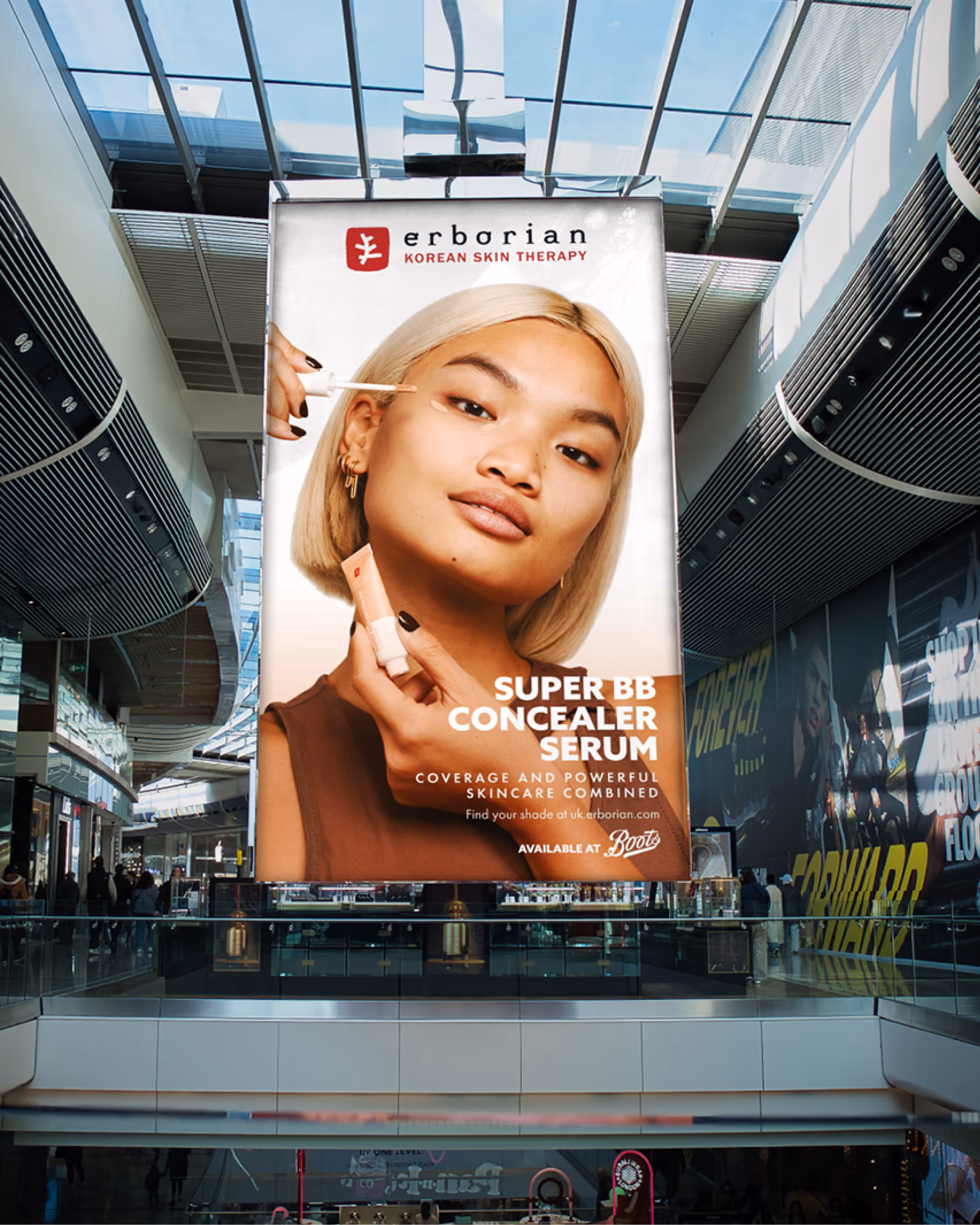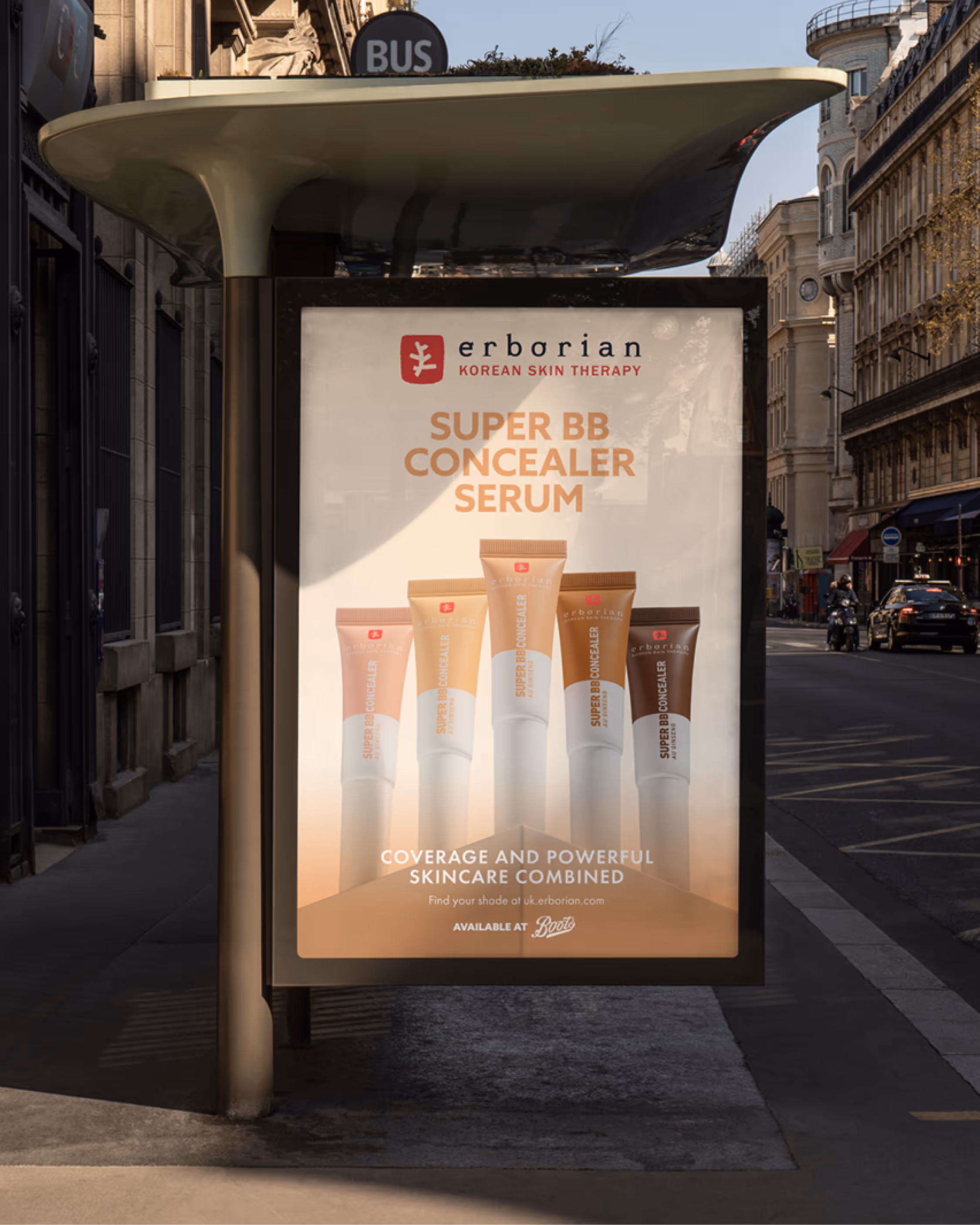 Korean skincare brand Erborian was gearing up for the launch of its new Super BB Concealer-Serum, which combines coverage and skincare into one product. To mark the occasion, the team at Erborian was running its first UK OOH campaign and asked us for help with the creative assets.