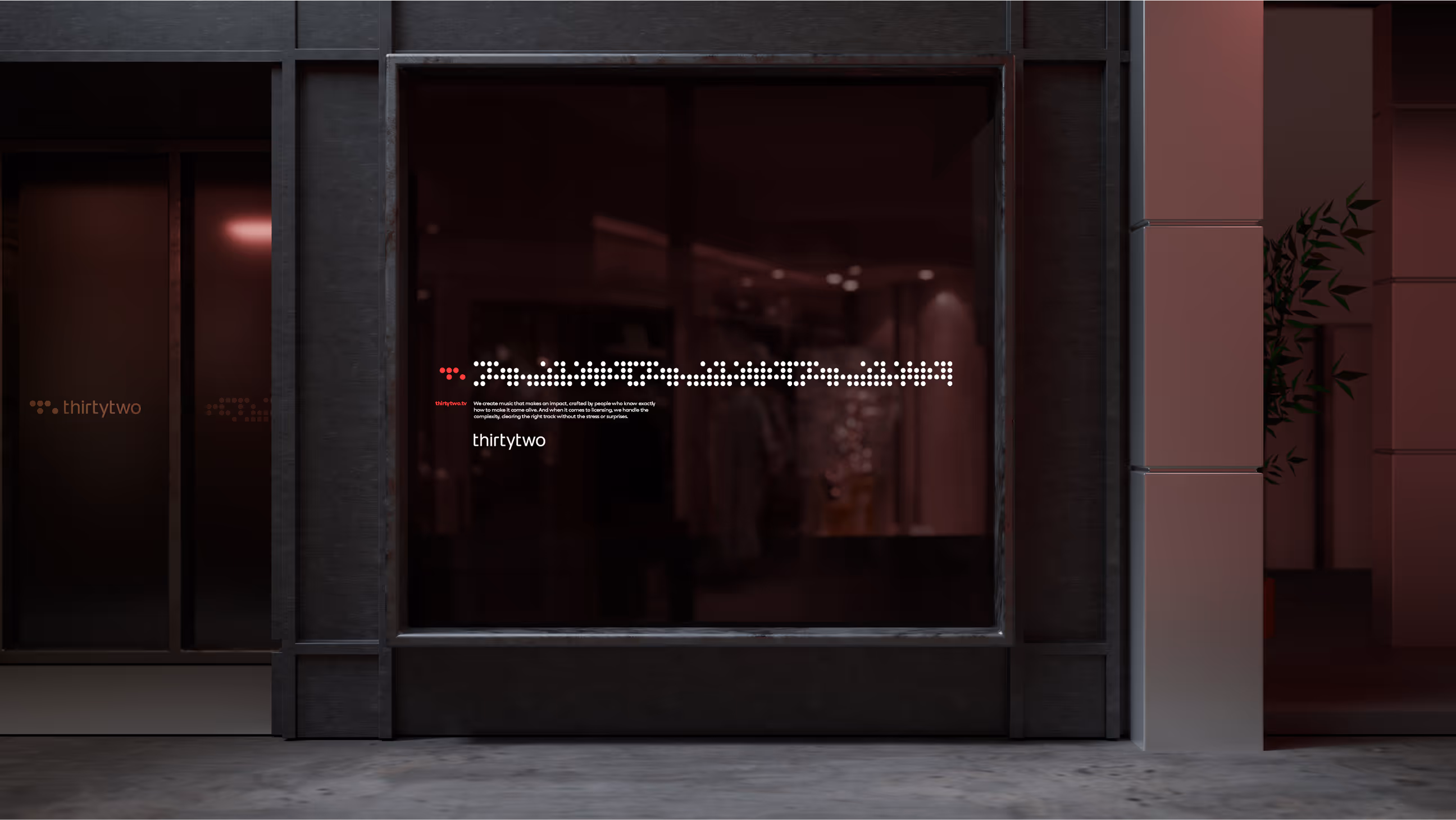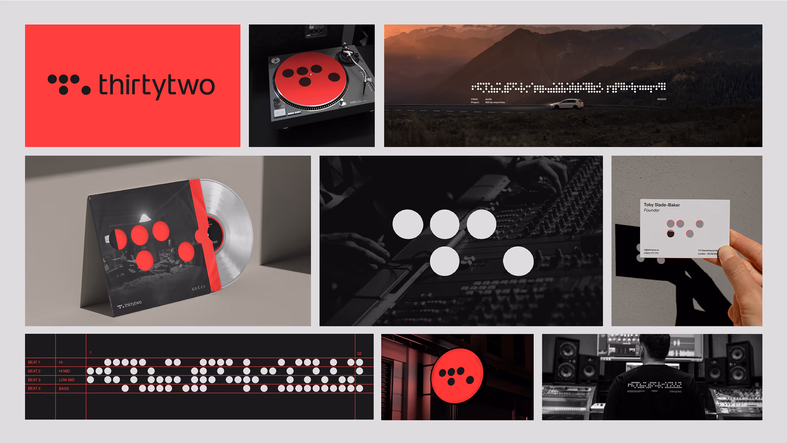 Thirty Two Music is a boutique music agency built on rhythm and precision. The business is extremely well respected in its space and has a long history of delivering music that makes an impact and brings client projects to life. However, Thirty Two had never really focused on its brand and wanted to create something that matched its position in the industry. Drawing inspiration from ‘player piano’ book music punch cards and step sequencers, we developed a visual language based on dot matrices, capturing the harmony of rhythm, accuracy and structured creativity. It creates a visual reference that instantly shows what Thirty Two brings to a project and shines a light on the impact the right music can have on a production.