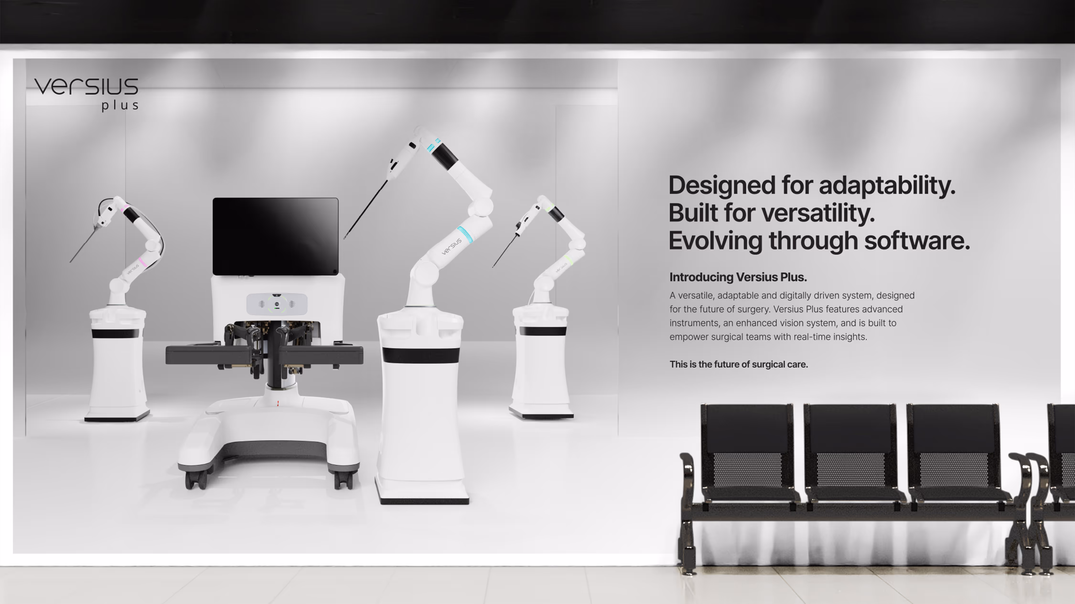 We launched the campaign with a cinematic 3D-rendered product film, designed to show Versius Plus in a bold new light, elevating it from a tool to a sublime combination of engineering and artistry. Our campaign toolkit modernised the visual identity and refined messaging to further cement Versius as a world-class surgical platform.